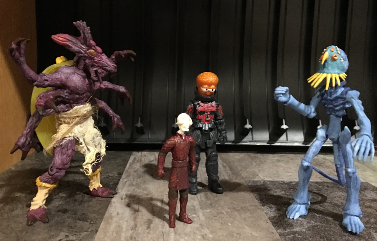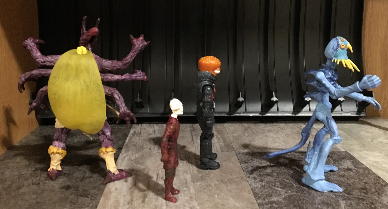 Octohead: Not-Kinder Toy head, The Corps body. This figure shows the relative scale of the other figures.