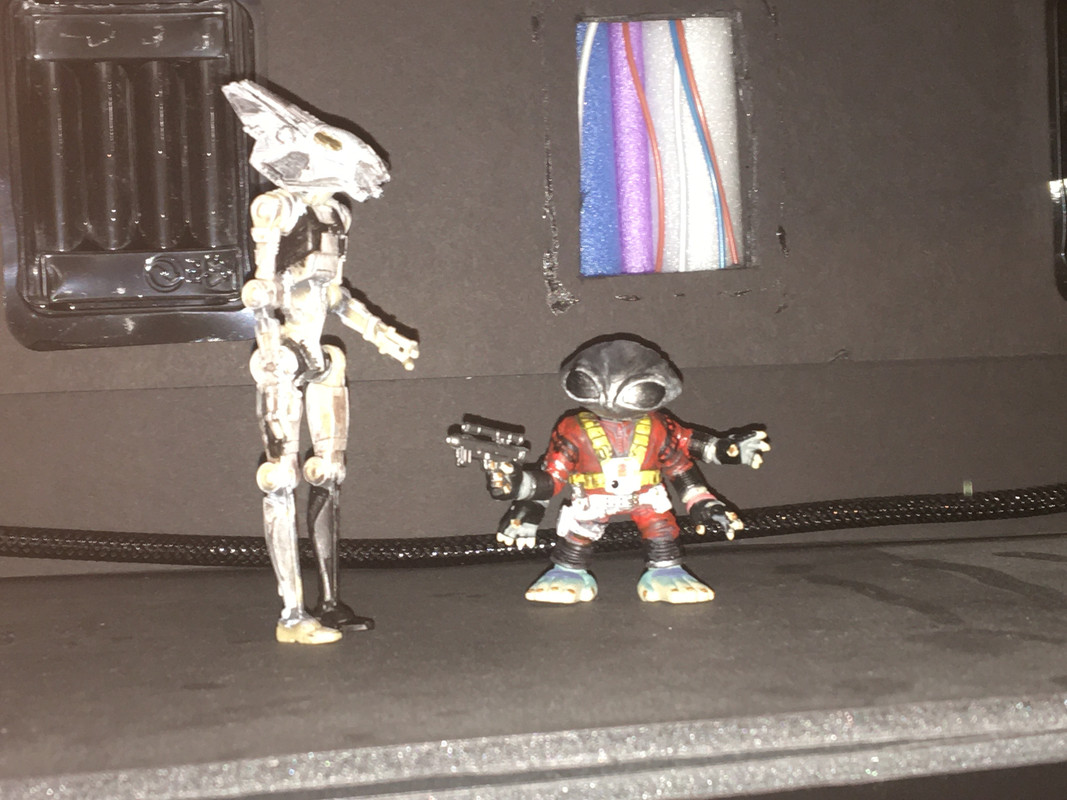 Translator is a Prequel droid with a micro-machine?? ship for a head.