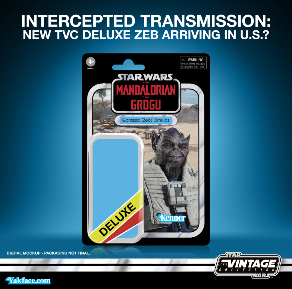 Recent shipping info shows that a new Deluxe Vintage Collection figure is now arriving in the U.S.. So far for 2026 we’ve received the deluxe Mandalorian & Grogu, Baze Malbus and now this third mystery figure. If my info is accurate, it may be the new version of Zeb Orrelios from the upcoming The Mandalorian and Grogu film. The ActionVerse kid’s line has already received him and he’ll soon be joining the Black Series as a Deluxe as well (in both regular and First Edition flavors).