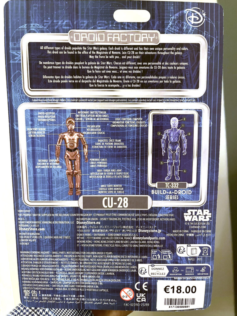 The next Droid Factory release, CU-28, has been found at Disney Store in Dublin, Ireland. This figure will be available to purchase Next Friday, Feb 6 at 8am PT / 11am ET at DisneyStore.com and at park locations. Collect all 6 droids to build TC-332.